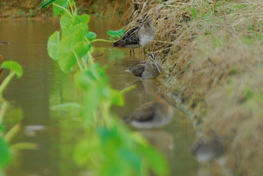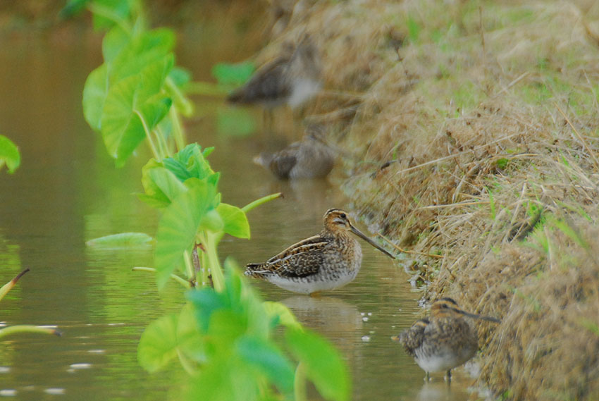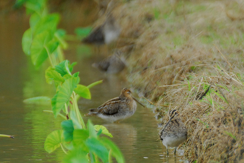 右のタシギとのツーショット写真はだいぶトリミングしてマス^^;