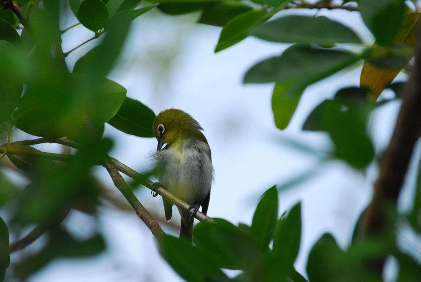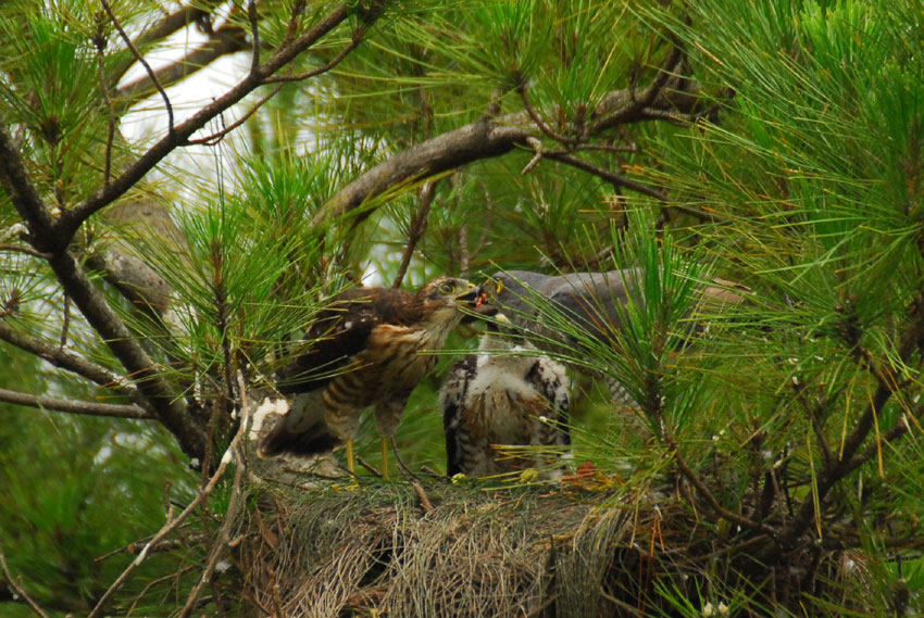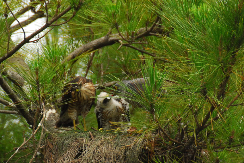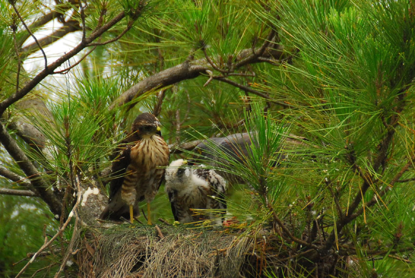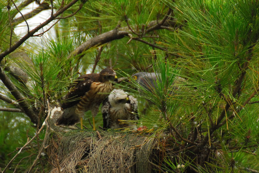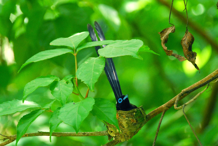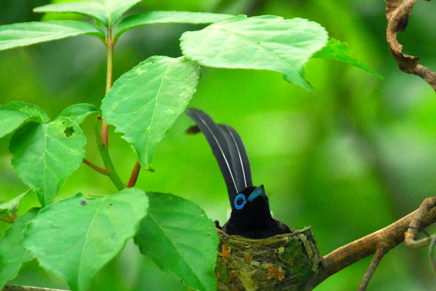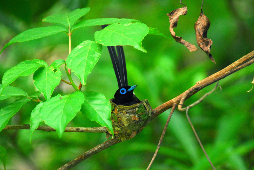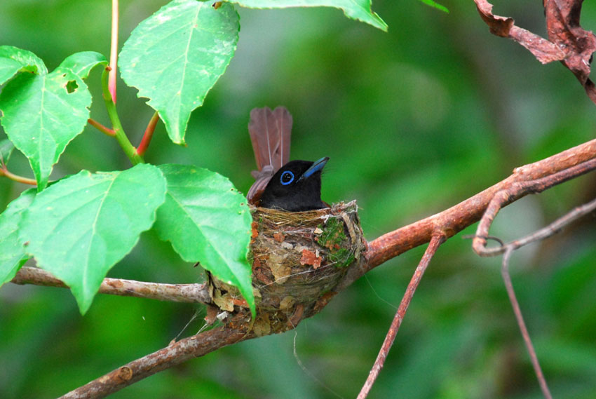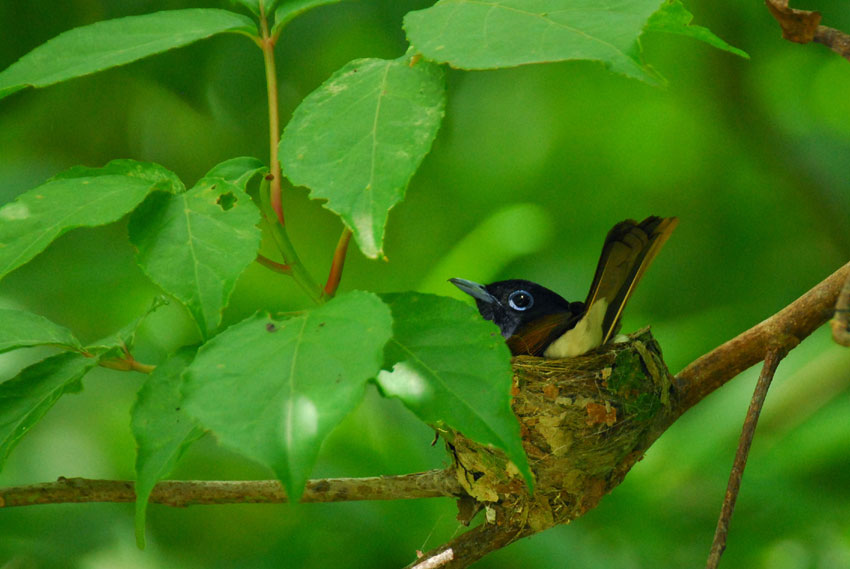 巣の上にかかっている葉っぱが、雨や日差しをよけてくれてるみたい。